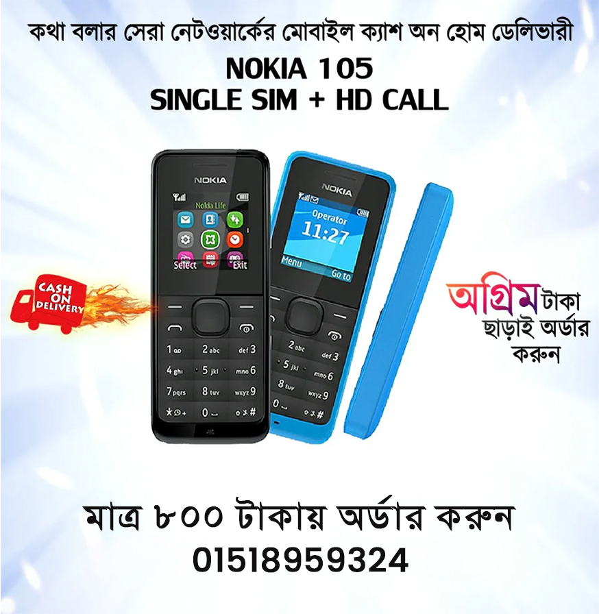 - Nokia 105 ১টি সিম কার্ড সাপোর্টেড।