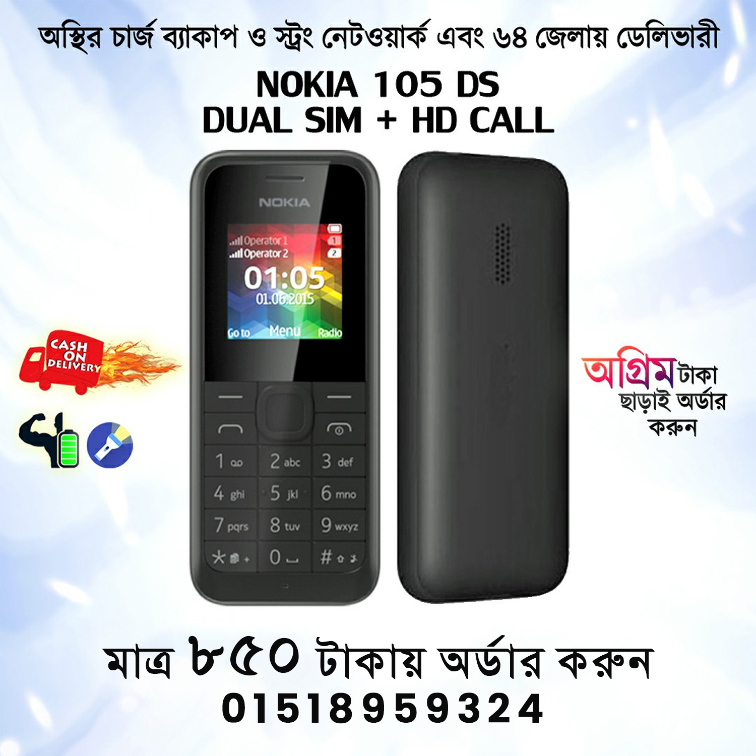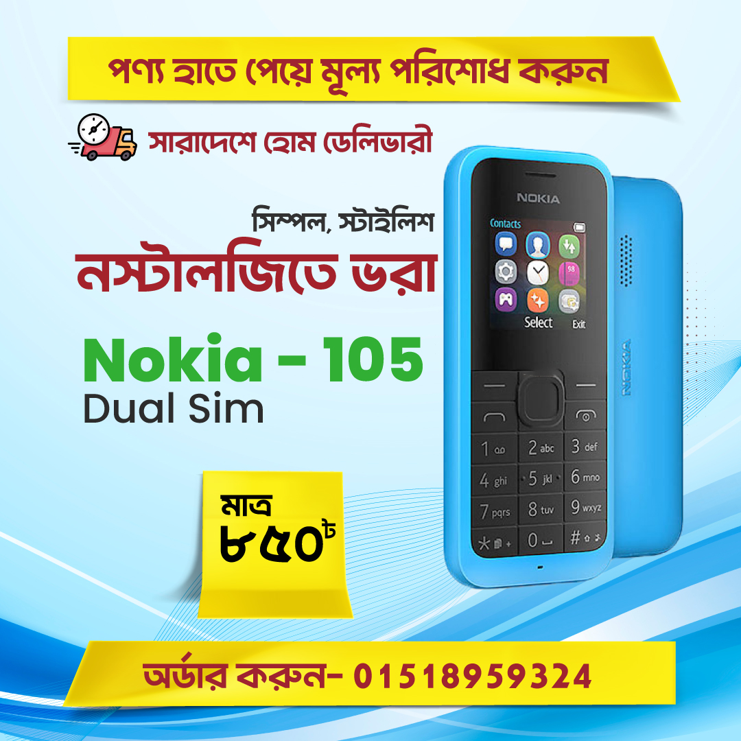 - Nokia 105 ২টি সিম কার্ড সাপোর্টেড।