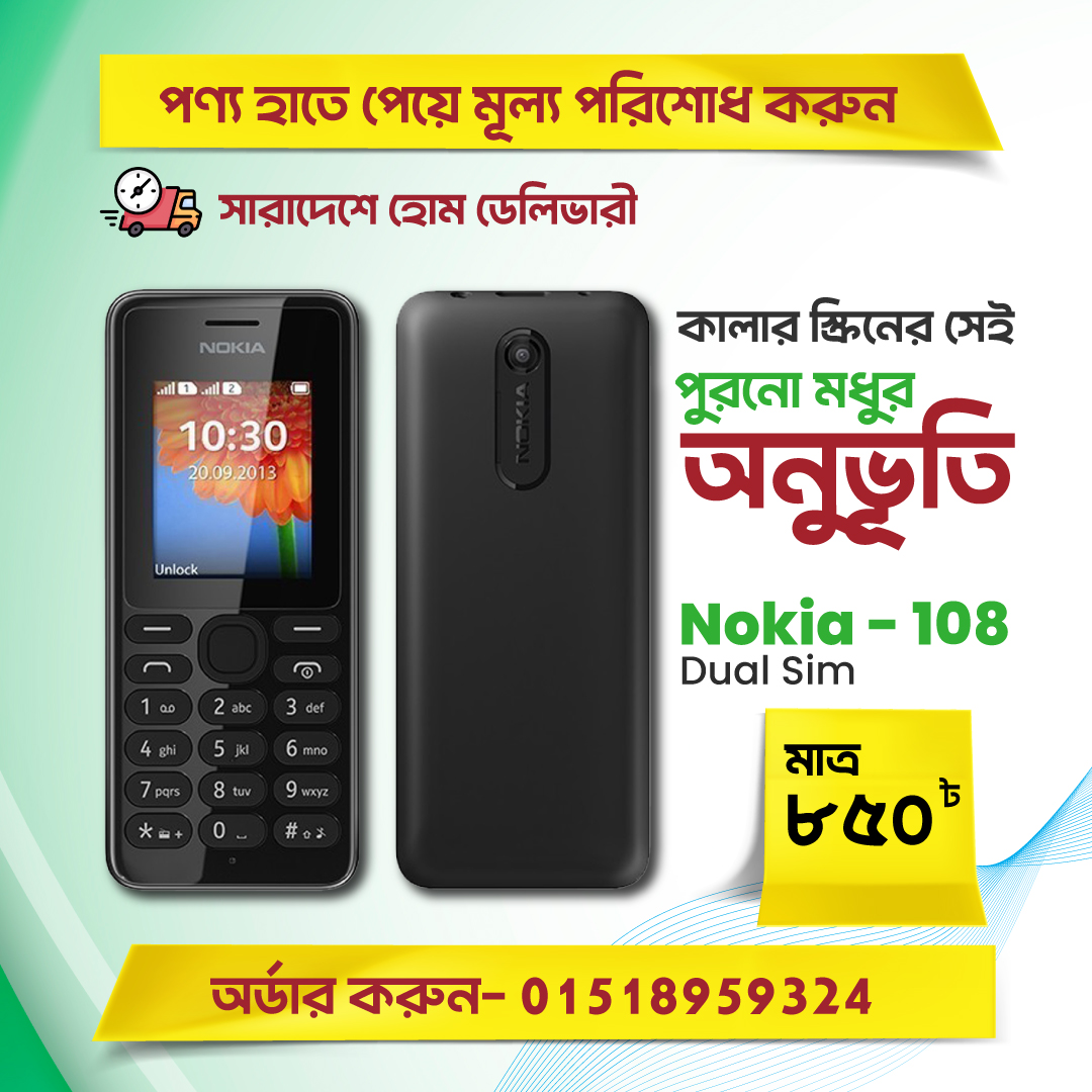 - Nokia 108 এ দুইটি সিম কার্ড সাপোর্টেড।